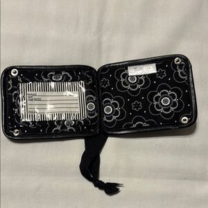 Stylish key and card holder. Black with floral design. Handy strap for easy carrying. NWOT Smoke free & Pet free home. See ALL photos for complete description/details.