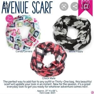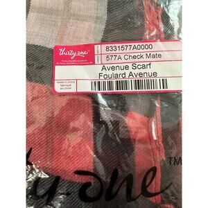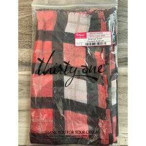 Thirty-One Check Mate Avenue Scarf Black Red White Plaid
