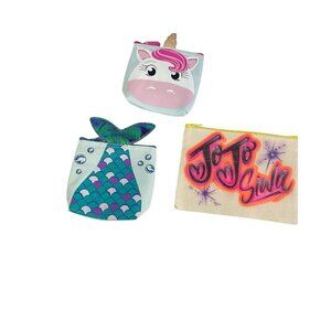 lot of 3 accessory pouches. 1 thrity one mermaid tail zip lock pouch, 1 unicorn thirty one zip lock pouch and 1 jojo siwa pouch. great for storing snacks in the thirty one, accessories for little girls or travel. all in very good condition