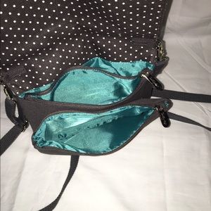 Never used, awesome bag with lots of compartments. Detachable strap. Can be used as wallet or wristlet. Charcoal color