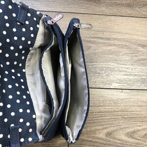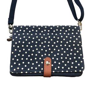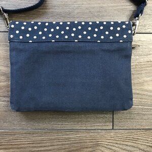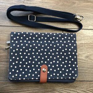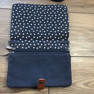Thirty-One Double Up Crossbody Bag SMALL Navy, White Polka Dot Canvas Snap 6'X8"