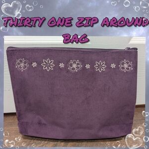 Thirty-One Floral Embroidered Purple Cosmetic Case