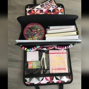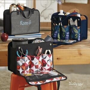 I have 2 of these get creative caddy's in charcoal grey with no personalization (first image). The other images are pulled from the web to show the storage options within the bag and things you can use it for.