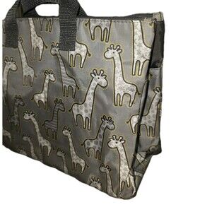 Thirty-One Gray Giraffe Print Small Tote Bag Double Handle Zippered Sections . Never Used. Excellent Condition. Nonsmoking Seller. Ready for immediate shipment.