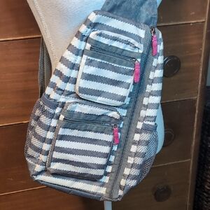 Thirty-One Gray White Striped Durable Crossbody Travel Purse