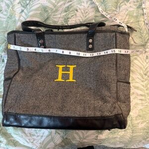 Thirty-One "H" Embroidered Bag. Gray & Black with a yellow "H." Please see pictures of handles.