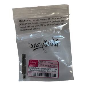 Thirty-One JK Love Rev Stamp Charm in Antique Pewter New