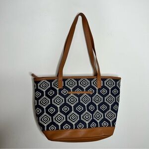 Thirty-One Little Dreamer Dotty Hexagon Brown Blue Geometric Print Tote Bag