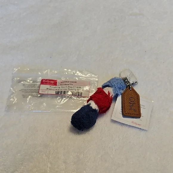 NWT Adorable and Charming purse charm with multicolor design. Features a brown tag and a playful tassel. Tag is monogrammed with initials JMO but not real visible if using on purse. Haz a little hook closure but wrapped in tissue to attach to purse or Keychain or luggage. Never used and comes from a non-smoking/ pet free home.