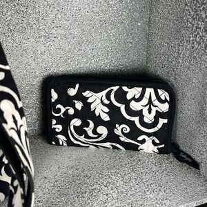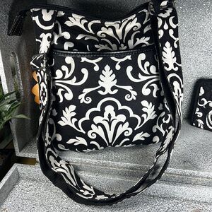 Thirty-one Organizing Shoulder Bag Black Parision Pop. Great cross body or shoulder bag. Organize all your makeup and receipts in one bag and matching zip wallet.