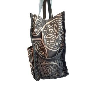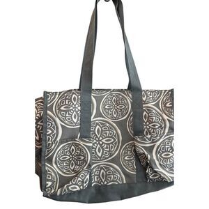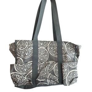 Thirty One Organizing XL Tote Shoulder Bag Gray Canvas Water Bottle Holders Zips