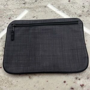 It features a zippered pocket and can be used to organize smaller items within a larger tote or carried on its own.