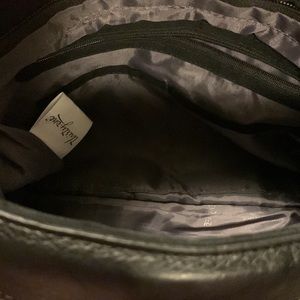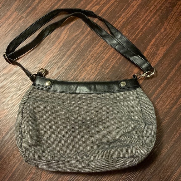Black Crossbody/clutch style purse. This purse is very versatile. You can take the cover off and have a black purse or leave the cover on for a different look. Comes with two different size straps. Zipper closure and has a zipper pocket inside as well as two smaller pouch pockets. 14”x8”