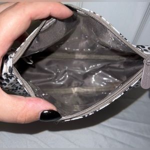 Thirty-One Make Up pouch approx 6”x8”. Originally part of a Hello Happy bundle. Has clear plastic lining so it can be wiped clean.