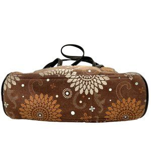 Thirty-One Shoulder Bag Brown Mandala Leather Straps Zip Closure