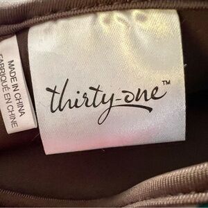 Colors: Tan w Teal Dot Pattern. Dark Brown Interior. 100% Polyester. Dimensions: 8 x 10. Gently Worn. No Stains. One Micro Fabric Snag on back, please review Pictures. Smoke Free Home.