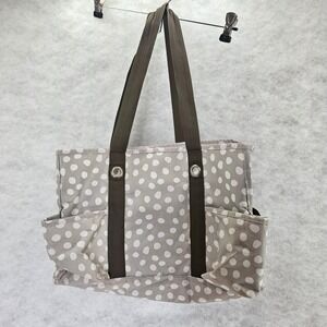 Thirty-One Tote Bag Taupe White Polka Dot Brown Handles 7 Pockets Pre-owned
