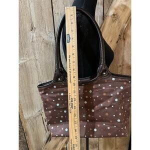 Thirty-One Tote Purse Handbag Brown With Polka Dots Mint Green Liner