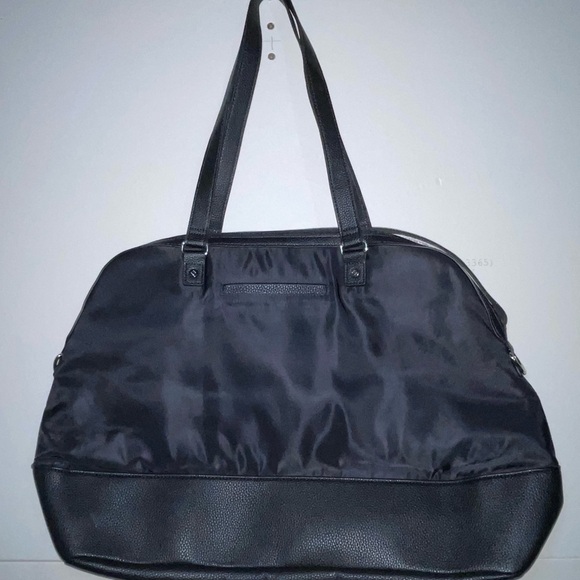 NWOT Thirty One weekender bag. Faux leather with tote handles and long adjustable strap. Cell phone pocket on the outside and zipper pocket on the inside. Never used, comes from smoke-free, dog friendly home.