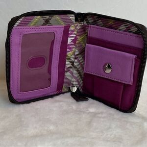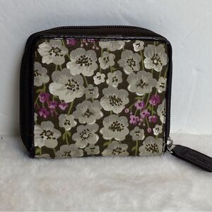 Thirty One Floral Zip Around Wallet. Gently used condition. Mild peeling on brown trim otherwise great condition. Measures approximately 5”x4”.
