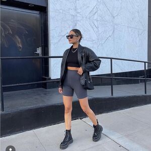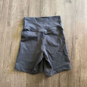 Limited edition grey biker shorts. Size XS. Flaws are shown - very minor pilling.