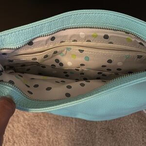 Clean, never used, from a smoke free home, only used to display for the host, I no longer work for 31 and selling everything I have on hand. (Turquoise color.) front pocket cell phone holder.