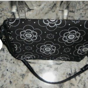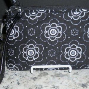 Thirty-one Black White Floral Wallet Wristlet Removable Strap