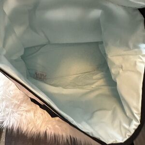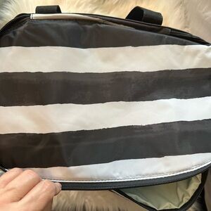 Stylish and spacious, the tote bag features a chic black and white striped design. Perfect for everyday use, this bag combines fashion with functionality.