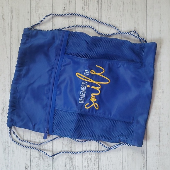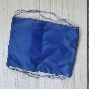 Embroided cinch sac from Thirty-one Draw string closure Exterior zipper pouch Royal Blue Nylon 18.5" x 14.5"