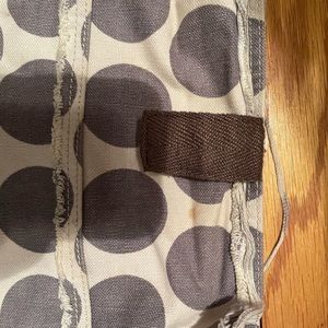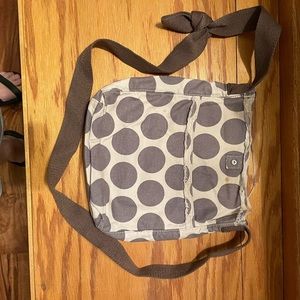 Thirty-One Crossbody purse; gray cream polka dot pattern. Used