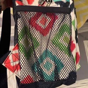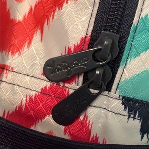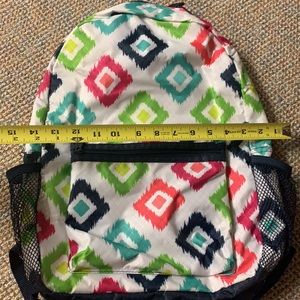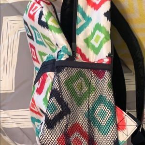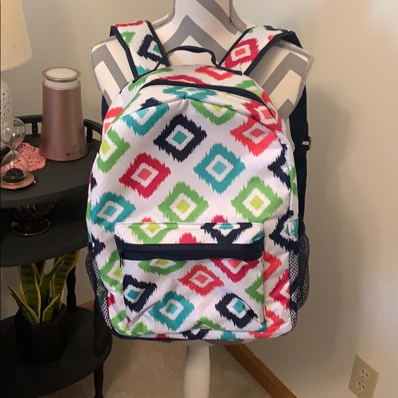 NWOT. Thirty one multiple color abs design backpack. 2 mesh side pockets. One smaller front zipper pocket. Large zipper with laptop holder.