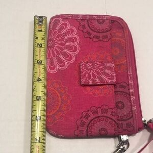 Thirty-one flower pink design wristlet with outside Velcro pocket