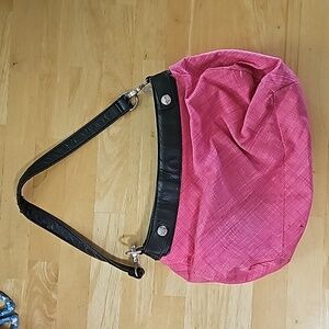 Thirty-one suite skirt bundle- This purse was my favorite off and on for a couple of years. It's indestructible, in fact the interior is clean and like new. Perfect size for everyday carrying. It's parts are interchangeable, it's the Legos of purses! The pink outer shell has a little staining (see pictures) but is machine washable and doesn't have any rips, tears or wear in the sewn seams. I'm also including 2 pretty much new suite skirts in neutral tones to make this match any outfit. Leather strap has a bit of wear but lots of life still left. It clips on and off and could be replaced by any brand really. It's very easy to change out and I believe you can still order new ones from Thirty-one (not sure) This will become your favorite as well!