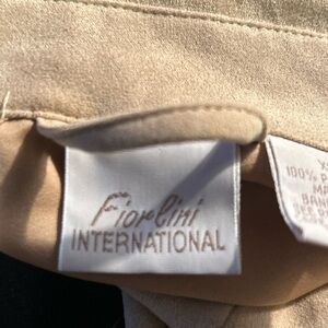 This Fiorlini tan polyester tunic top in size XL preowned on excellent condition. It's designed with long flared sleeves with splits in the back and a tie closure. It is a regular fit top with a basic style. The fabric type is ultra suede, making it a stylish and comfortable addition to any wardrobe.