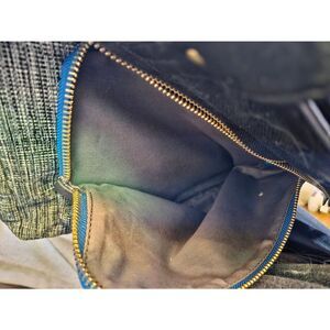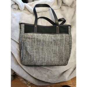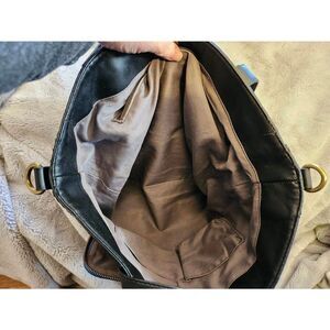 The bag has multiple inner and outer pockets for easy organization and the hardware is gold in color. It is branded as Fossil and falls under the Women's Bags & Handbags category. The lining material is a combination of canvas and leather, with a brown lining color. The handle/strap material is also a combination of canvas and leather in brown color, making it a versatile accessory to match with any outfit. The handles and leather strap has some pealing.