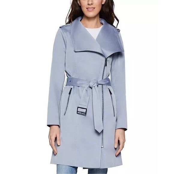 This is a BCBGeneration Envelope Collar Trench Coat in a light blue or chambray