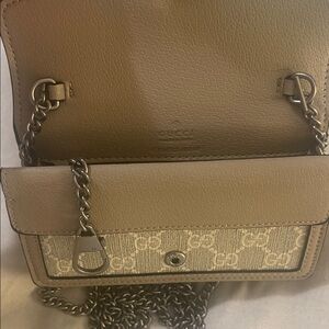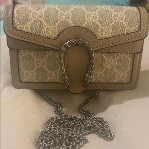 Elegant brown women's bag with a stylish design. Perfect for any occasion. Only used 1 time ever since it’s in the closet . Size is 7inch width and 3 inch in length. My I phone promax does not fit .