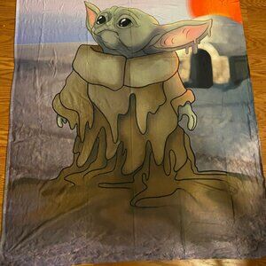 Baby Yoda is melting just like how he melts your heart! Very stretchy fabric.
