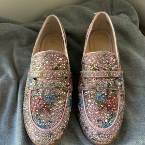 This is a pair of Betsey Johnson Aron rhinestone loafers.