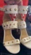 Chic white heels with gold studs. Stylish ankle strap design. Perfect for a night out.
