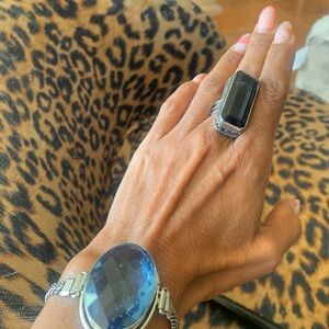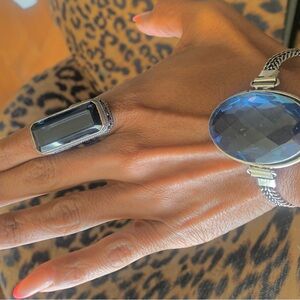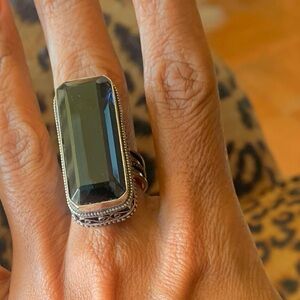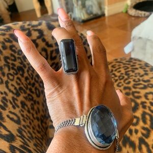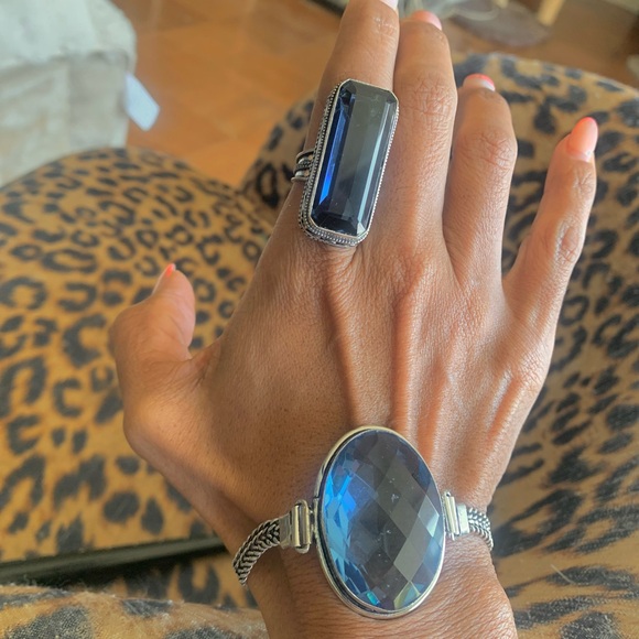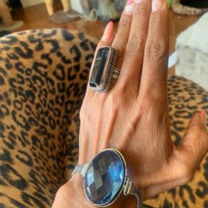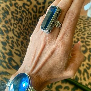 This elegant ring features a striking blue crystal set in a sleek silver frame, perfect for adding a touch of sophistication to any outfit made in Egypt absolutely stunning