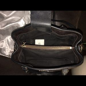 Brown and black coach bag, black inside. New. Hasn't been used just been laying around. Was 395.00 at the beginning of summer.
