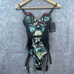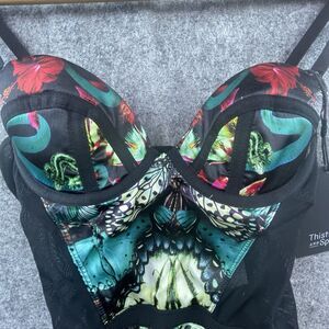 Thistle and Spire Bodysuit Womens Extra Small Tourmaline Butterfly Monarch Satin