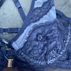 Thistle and Spire Bra Womens 32C Denim Racerback Lace Strappy Sheer Revolve