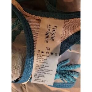 Thistle and Spire Womens Brooklyn Haze Embroidered Sheer Thong Size 3X Green
