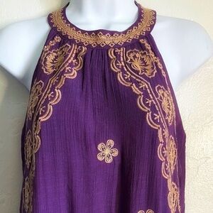 Thml Anthropologie Purple Embroidered Sleeveless Boho Dress Size XSP