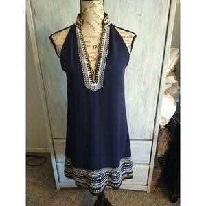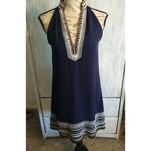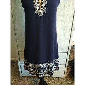 This Anthropologie dress is a must-have for any woman's wardrobe. The knee-length, sleeveless A-line design is perfect for any occasion. The blue color and embroidered accents add a touch of elegance to the dress. It comes in size XS for regular size types and is perfect for women of all departments. This dress is sure to make you feel confident and beautiful.