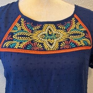 THML Blue Embroidered Boho Top. Size S true to size. In excellent condition. No holes or stains.