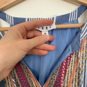 Thml Bohemian Embroidered Blue Striped Maxi Dress