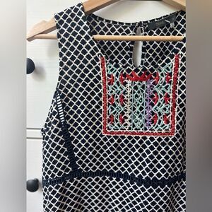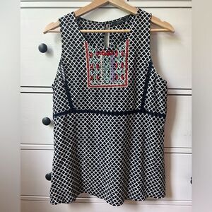 THML Anthropologie Womens Sleeveless Embroidered Tank Top Black White Size Small.